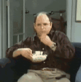 Even more wonderful than the smell of popcorn is the sound of someone eating popcorn.  How refreshing to know you are having a healthy snack at the end of the day.  It’s been three hours since I’ve eaten and your chomping on that popcorn is a reminder to me that I should eat something as well.  Too bad I am not a Jewel-Osco and I don’t have an endless supply of snack foods in my desk.