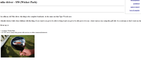“i’m sellin my old Nike driver. this thing is the complete bombastic. its the same one that Tiger Woods uses