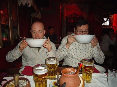 In Tallinn, Estonia these two idiots inadvertently decided to dress like twins. From dinner we went to a bar where I was so hammered that I fell head first out the front door at 1am. Charlie and Bobby put Felix and I in a cab back to the hotel. T = True. Bobby and Charlie went “out.” $2k and 8 hours later they came stumbling head first into our hotel room. T= Also true.
