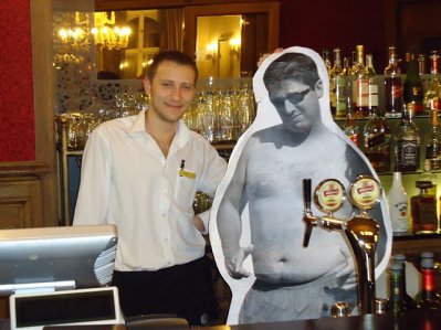 We got pretty tight with the bartender in Riga, Latvia and he let Felix pour some of our own drinks.